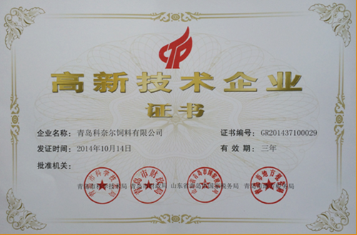 青岛科奈尔饲料荣获“高新技术企业”认证
